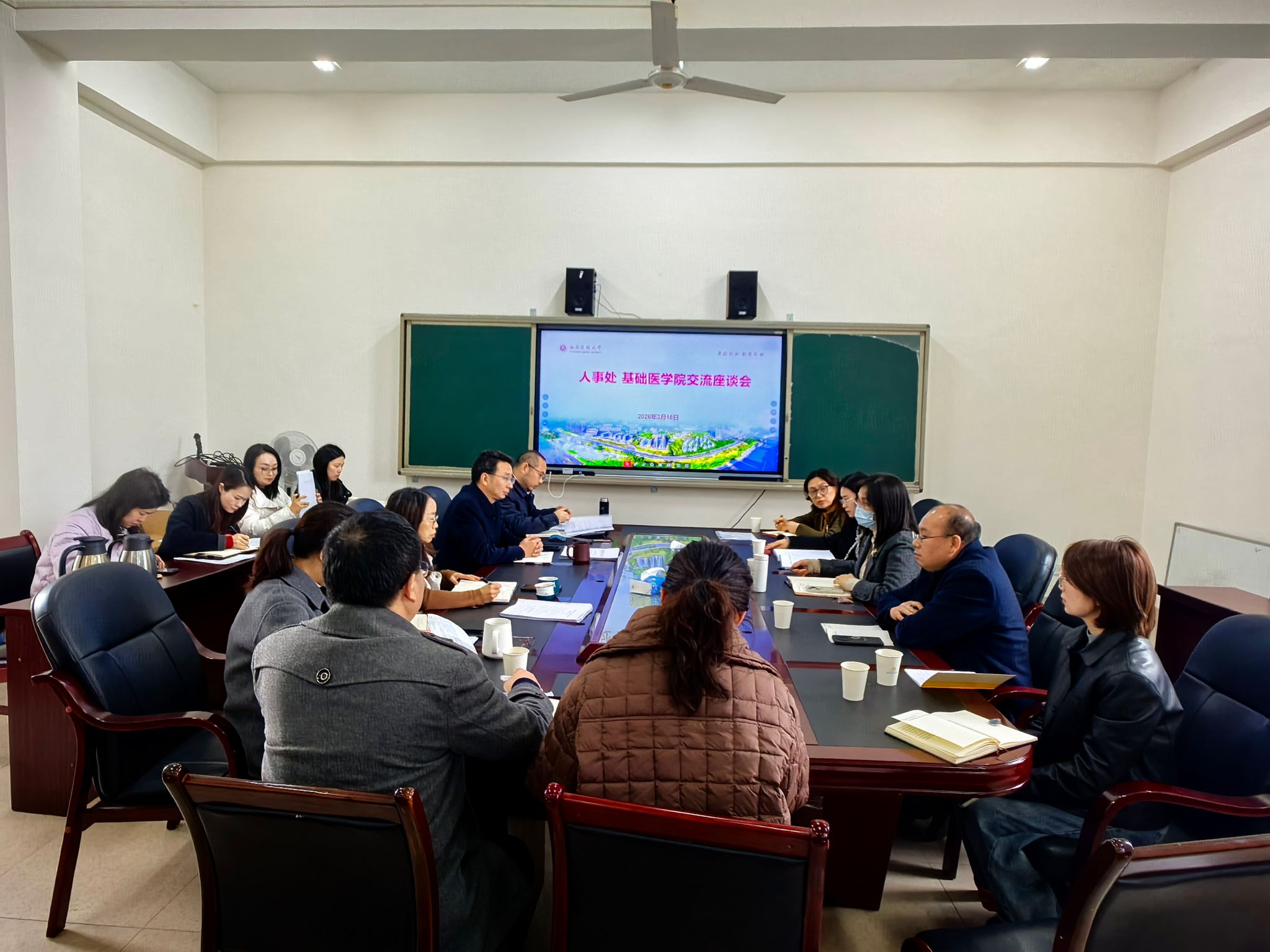 近日,学校党委教师工作部·人事处领导班子成员及相关职能科室负责人,赴基础医学院、人文与管理学院、基建后勤处开展交流座谈。